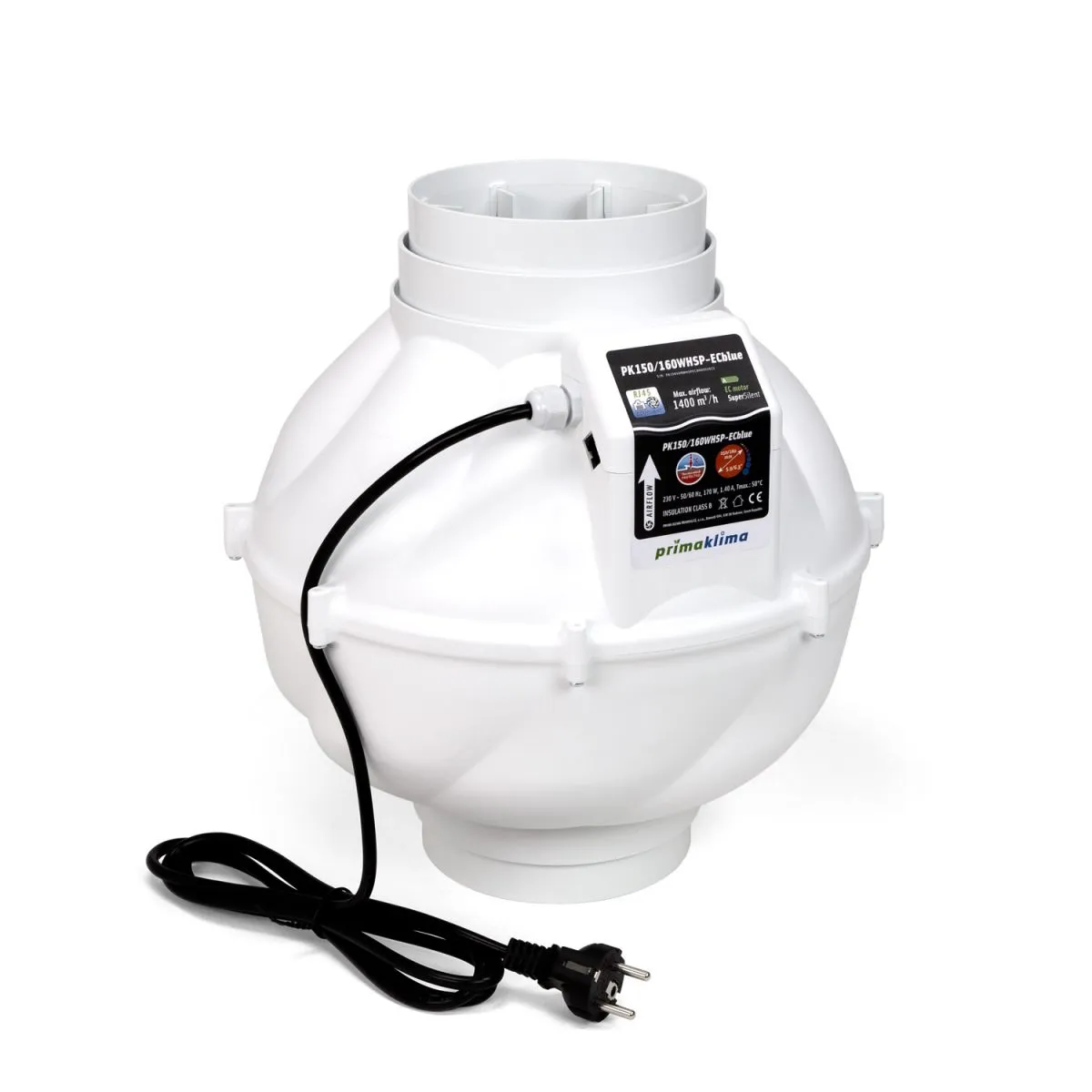 Produktbeschreibung für Prima Klima PK150/160WHSP-ECblue Ø150/160mm 1400m³/h - mit praktischem Kontrolleranschluss